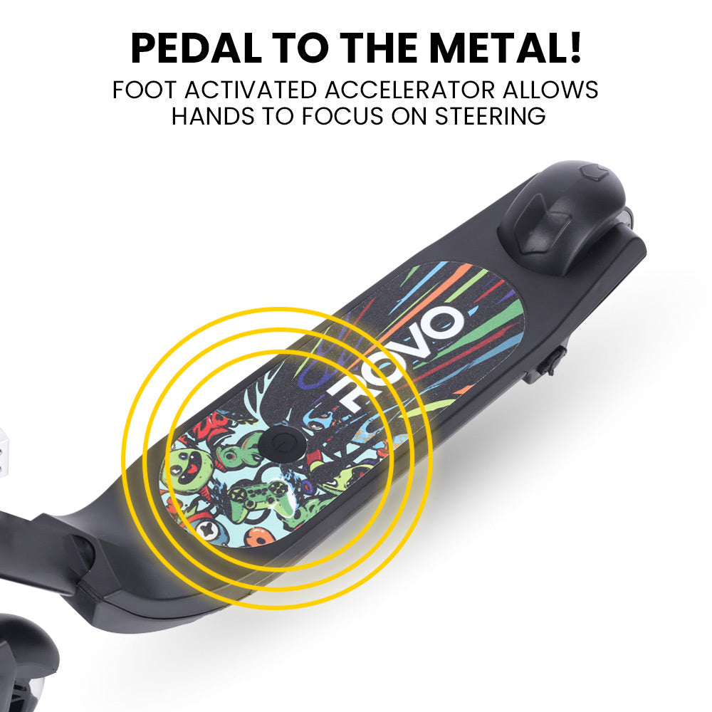 The Rovo Kids WhizKid Electric Scooter combines fun, safety, and style with its sleek design and vibrant multi colour light effects on the deck and front wheels. These cool lights add extra excitement to every ride!